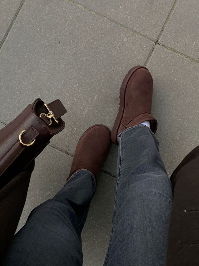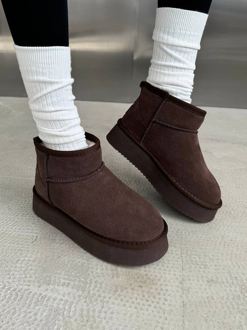 Apresentamos as nossas Botas Lea de Camurça Sintética, feitas de camurça sintética para uma combinação perfeita de estilo e funcionalidade. Estas botas apresentam um design inspirado nas botas de neve, com lã de carneiro vegan e detalhes que proporcionam um aumento de altura, tornando-as ideais para o uso diário. Com uma estética chique de outono e inverno, elas complementam perfeitamente o seu visual, seja a passear pela cidade ou a desfrutar de um aconchegante dia de inverno. Eleve a sua coleção com esta peça essencial nesta temporada.