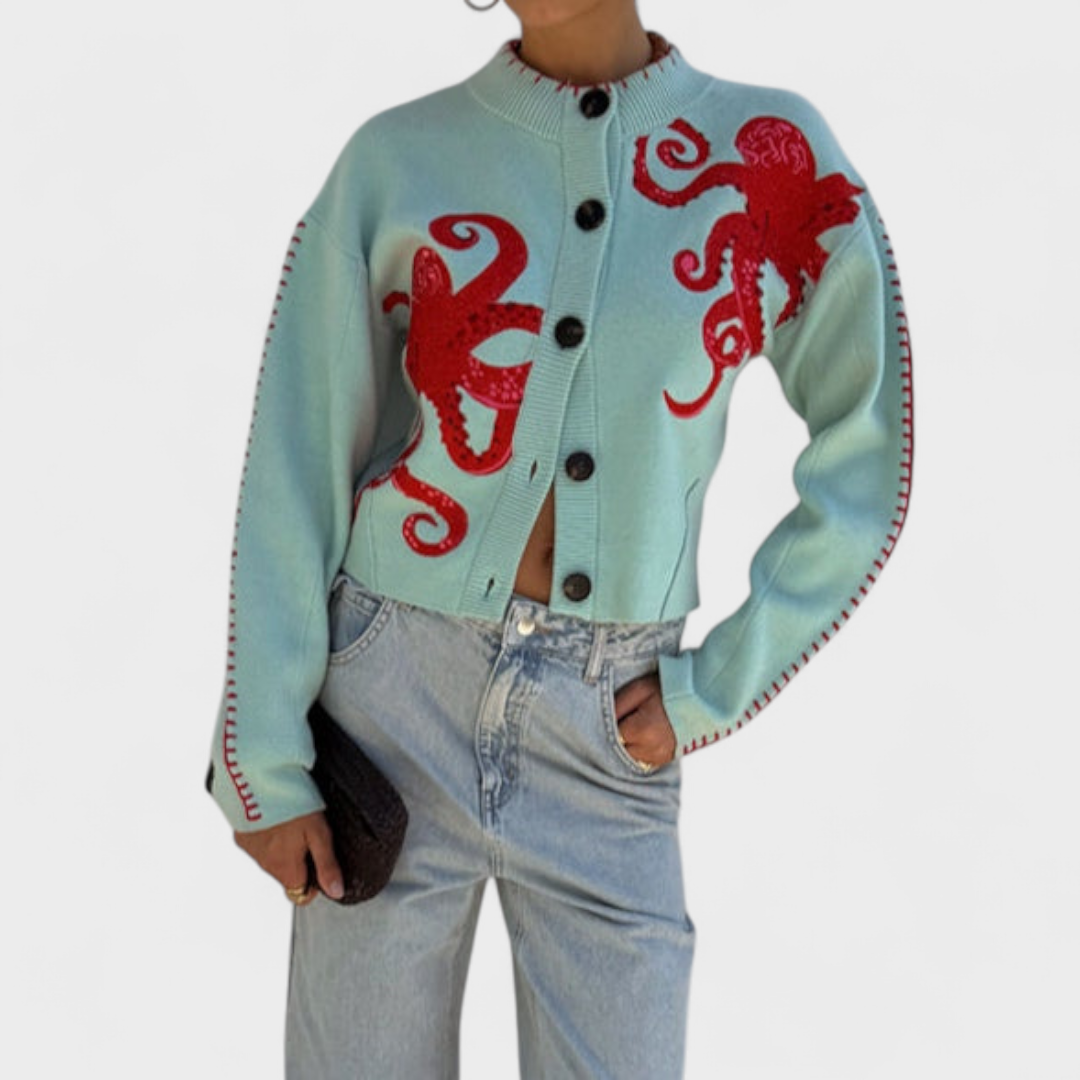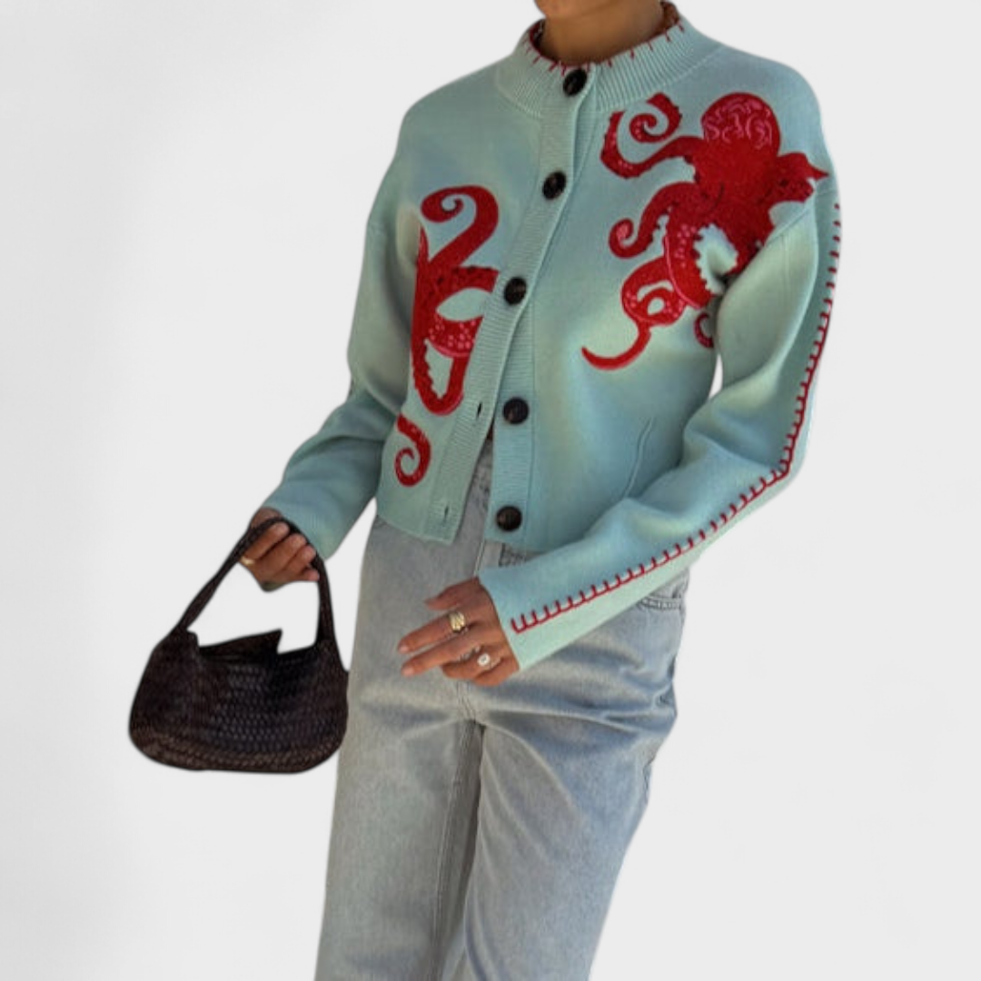 Este casaco é a escolha perfeita para quem gosta de unir conforto e criatividade num só look. O detalhe bordado em destaque dá-lhe um toque ousado e marcante, transformando uma peça clássica num verdadeiro statement de moda.