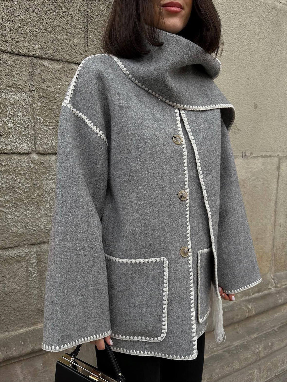 Casaco de Lã com Gola de Lenço