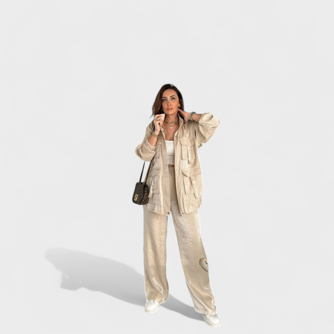 Este conjunto é a escolha perfeita para quem gosta de unir conforto e sofisticação no dia a dia. Com um corte fluido e detalhes modernos, adapta-se a diferentes ocasiões, desde um passeio casual até um look urbano mais arrojado.