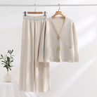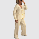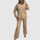 O Conjunto Alba - Conjunto Premium 2 Peças foi criado para mulheres que valorizam sofisticação e modernidade no dia a dia e em ocasiões especiais. Com cardigã tricotado de corte impecável, aplicação de botões metálicos dourados e calças de perna larga, alia conforto absoluto à elegância marcante. O design atemporal e os detalhes refinados realçam a silhueta de forma natural, proporcionando um visual exclusivo e versátil.
