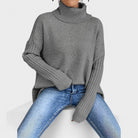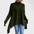 Esta camisola de gola alta combina modernidade e aconchego num design único e sofisticado. O corte assimétrico confere-lhe um toque distinto, ideal para quem procura estilo sem abrir mão da praticidade.