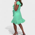 Com um toque feminino e cheio de leveza, este vestido destaca-se pelos seus folhos delicados e corte fluido. É a escolha perfeita para quem quer sentir-se elegante e confortável, seja num jantar especial, numa festa ou num passeio ao final da tarde.