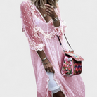 Um vestido leve e delicado que mistura transparência, rendas e detalhes em padrão poá, criando um visual cheio de feminilidade e sofisticação. O corte fluído com acabamento rendado transmite charme e elegância, perfeito para quem procura uma peça única que se destaca pela leveza e romantismo.