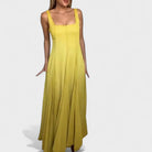 Este vestido comprido com alças largas é a definição de feminilidade leve e natural. O corte justo no peito e fluido no comprimento cria um movimento elegante a cada passo, proporcionando um visual marcante sem esforço.
