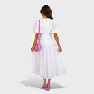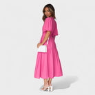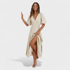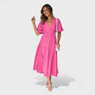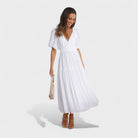 Este vestido é uma celebração de feminilidade e leveza. Com um corte fluído, mangas volumosas e decote em V, é a escolha perfeita para quem procura um visual sofisticado com um toque descontraído. Ideal para momentos especiais ou para transformar o quotidiano em algo memorável.