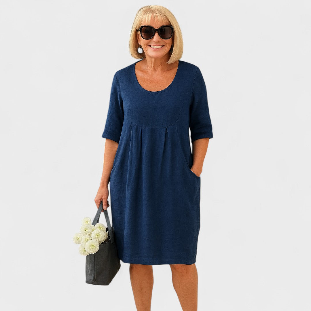 Este vestido foi pensado para quem valoriza o bem-estar sem abrir mão da elegância. Com um corte solto e fluido, mangas a meio braço e um decote suave, oferece liberdade de movimentos e um toque sofisticado.