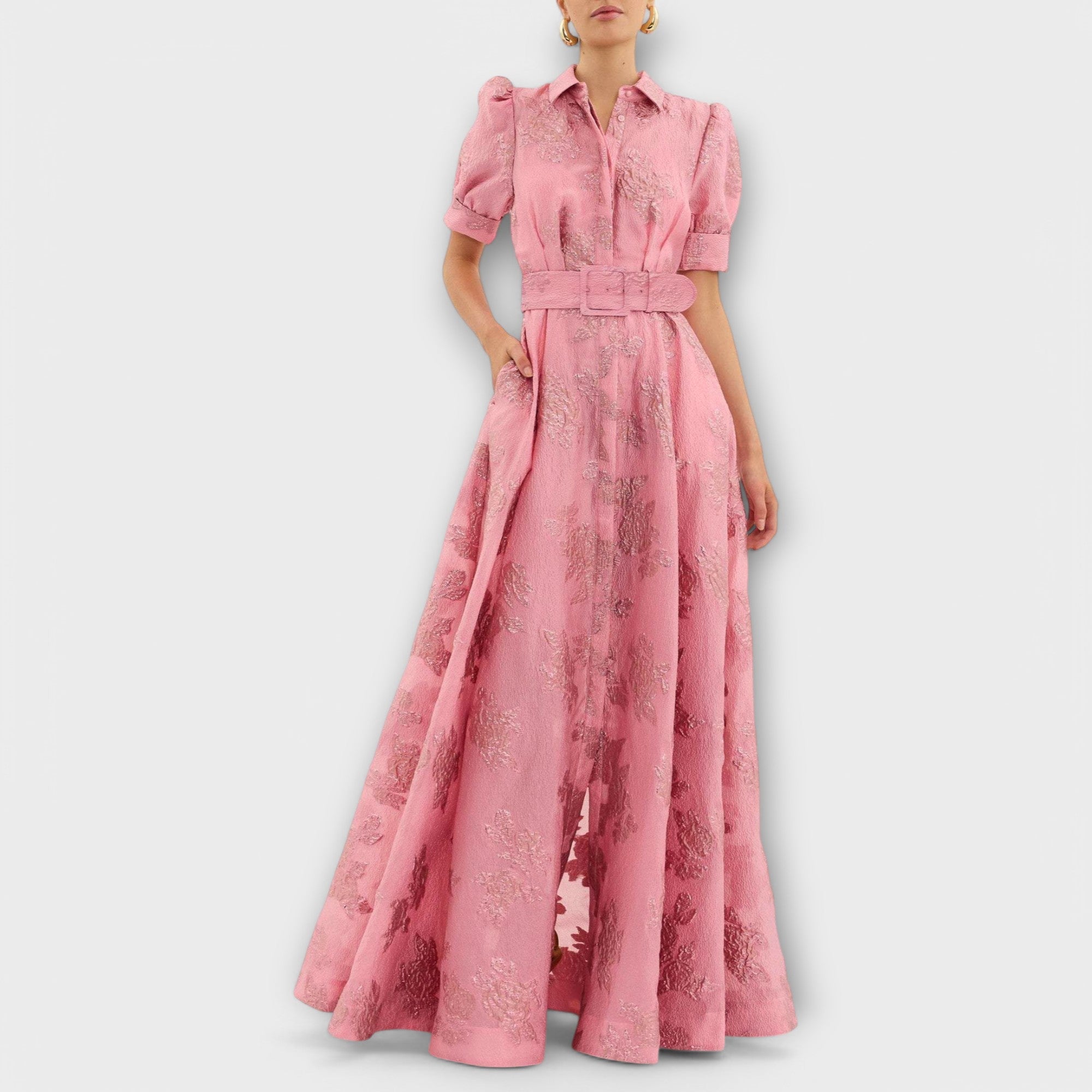 Este vestido com mangas bufantes curtas é uma escolha perfeita para quem deseja um look encantador e cheio de charme, com um toque de elegância clássica e moderna ao mesmo tempo.