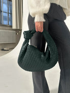 Uma silhueta elegante de saco com detalhes de treliça tecida - esta bolsa de ombro intemporal é feita em couro vegan macio e é a bolsa perfeita para o dia a dia.