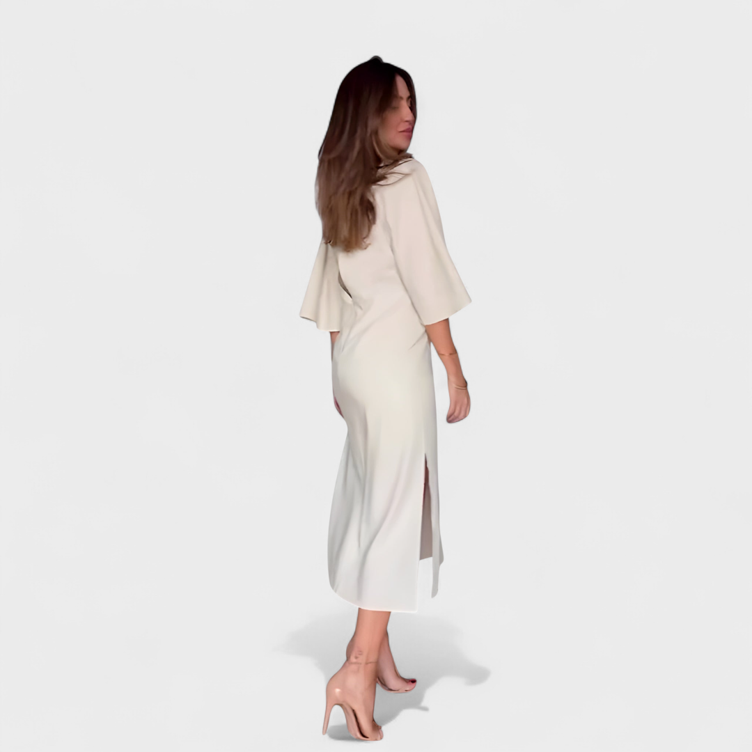 Um vestido que prova que menos é mais. O corte fluído, aliado ao detalhe do laço frontal, cria uma silhueta sofisticada e elegante, perfeita para qualquer ocasião. Seja num evento especial, num jantar elegante ou até no dia a dia, esta peça transmite confiança, charme e modernidade sem esforço.
