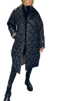 • Design moderno e versátil — corte longo e acolchoado com acabamento leve e estrutura em losangos que valoriza a silhueta.