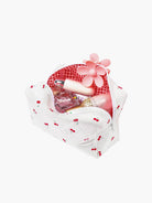 A nossa bolsa de maquilhagem Cherry - Uma bolsa de maquilhagem feita à mão em estilo vintage, com forro interior quadriculado e quilt exterior, design de padrão distinto e coordenação de cores, original e sempre popular, ideal para levar e usar durante as suas viagens!