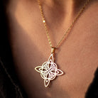 O nó de bruxa, com os seus laços infinitos, é um antigo símbolo de proteção contra energias negativas. Ao usar este colar, cria uma barreira invisível, mas poderosa, capaz de afastar influências indesejáveis enquanto traz paz e serenidade ao seu dia a dia.