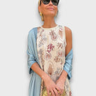 Um conjunto composto por vestido longo estampado e casaco leve a combinar, pensado para transmitir sofisticação e conforto em qualquer ocasião. O vestido valoriza a silhueta com o seu corte elegante, enquanto o casaco acrescenta um toque de estilo e funcionalidade, perfeito para usar tanto em dias mais frescos como em eventos que pedem um look completo.