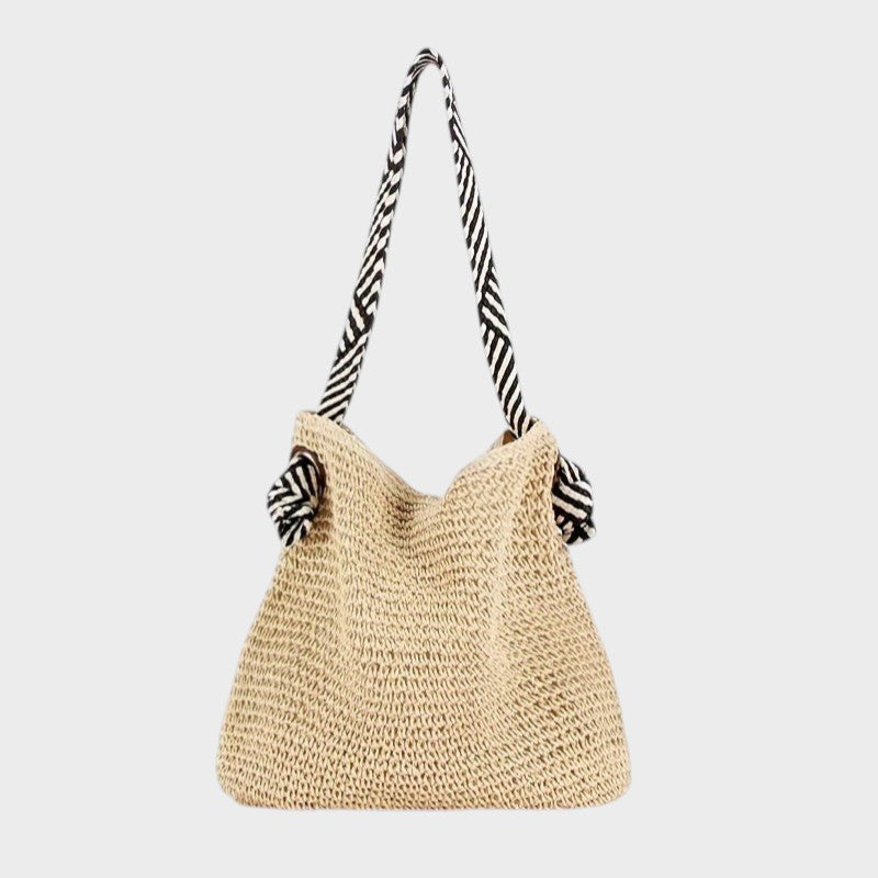Estilo artesanal com um twist moderno – O contraste entre a palha e as alças estampadas dá-lhe um charme especial.
