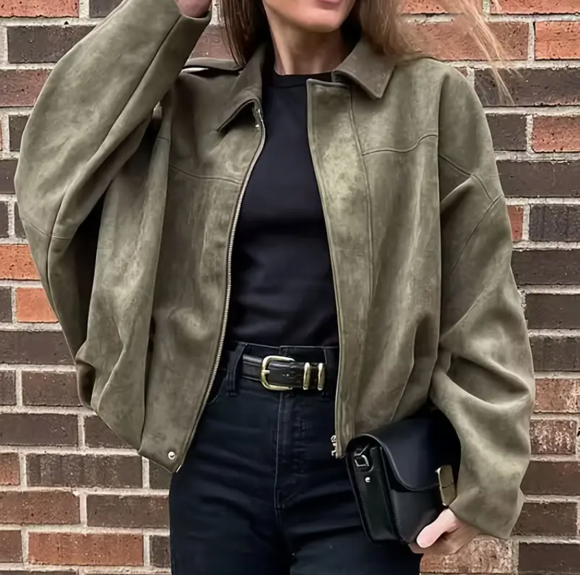 O casaco Ema é a tendência que está a conquistar esta estação. Inspirado nas passarelas de 2025, combina o charme intemporal da camurça com um design moderno e urbano, perfeito para quem quer um look sofisticado sem esforço. A textura suave e o corte bomber criam uma silhueta elegante e descontraída, tornando-o ideal para qualquer ocasião — do dia a dia às saídas à noite.