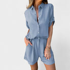 Este conjunto é a escolha certa para quem procura frescura e estilo num só look. A camisa fluida e os calções de cintura subida criam uma silhueta descontraída, perfeita para os dias de calor — seja num passeio informal ou num almoço ao ar livre.
