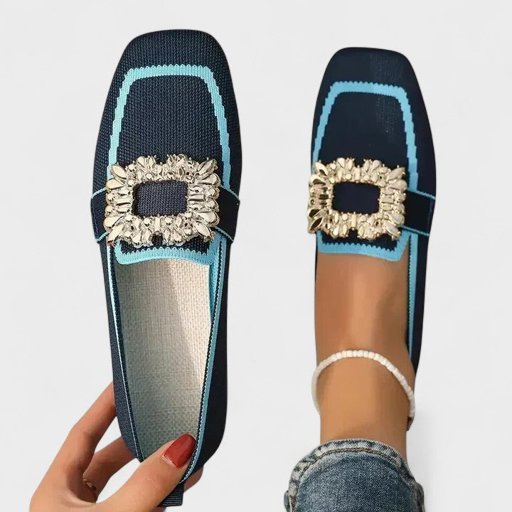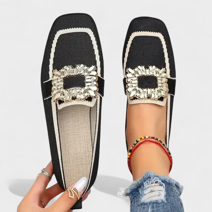 Estas sabrinas foram pensadas para mulheres que valorizam o equilíbrio entre conforto e sofisticação. O design moderno é elevado por um adorno brilhante que acrescenta um toque de glamour e exclusividade, tornando-os ideais tanto para o dia a dia como para ocasiões especiais.