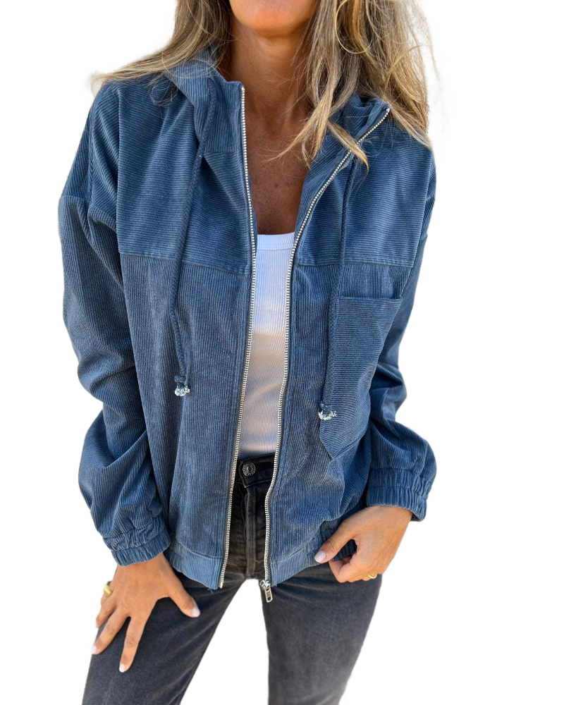Mostra o teu estilo com ISABELLA, o casaco em veludo cotelê que une charme retro e versatilidade moderna. Leve, suave e fácil de combinar, é a peça perfeita para as frescas noites de verão ou os dias ventosos.