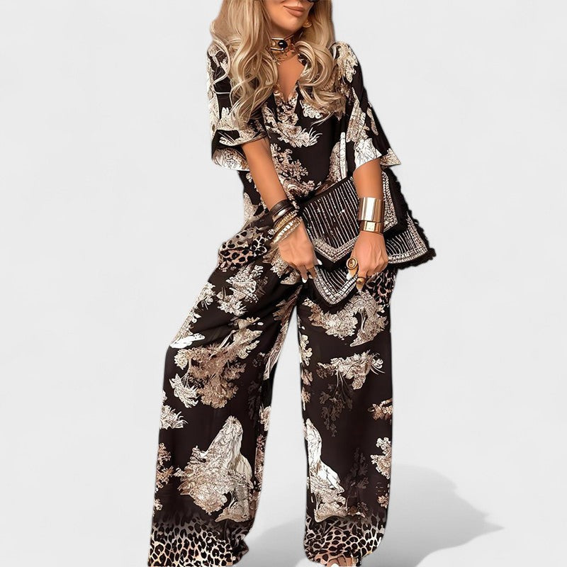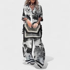 Este conjunto foi criado para mulheres que desejam unir conforto e sofisticação num único look. Com um corte fluido e estampado marcante, transmite personalidade e presença em qualquer ocasião.