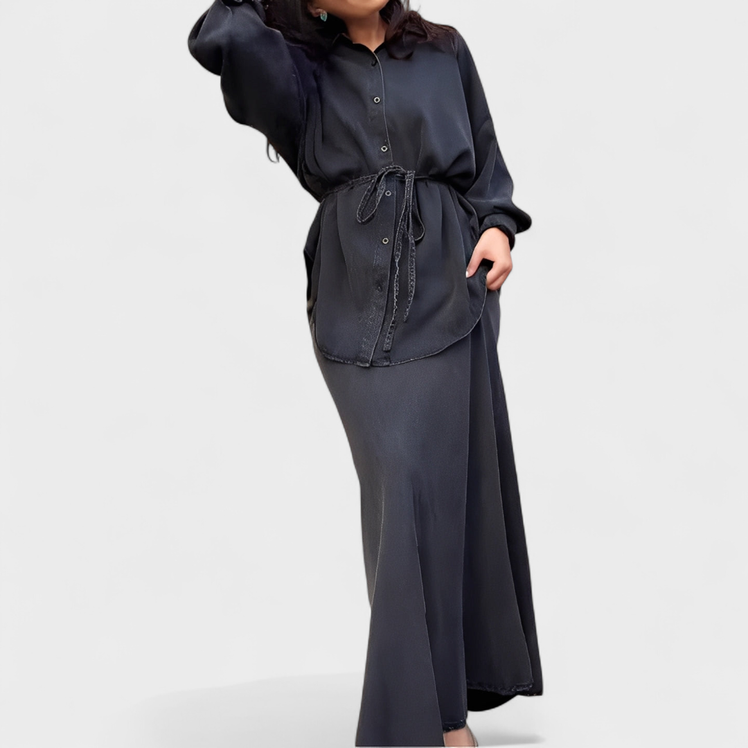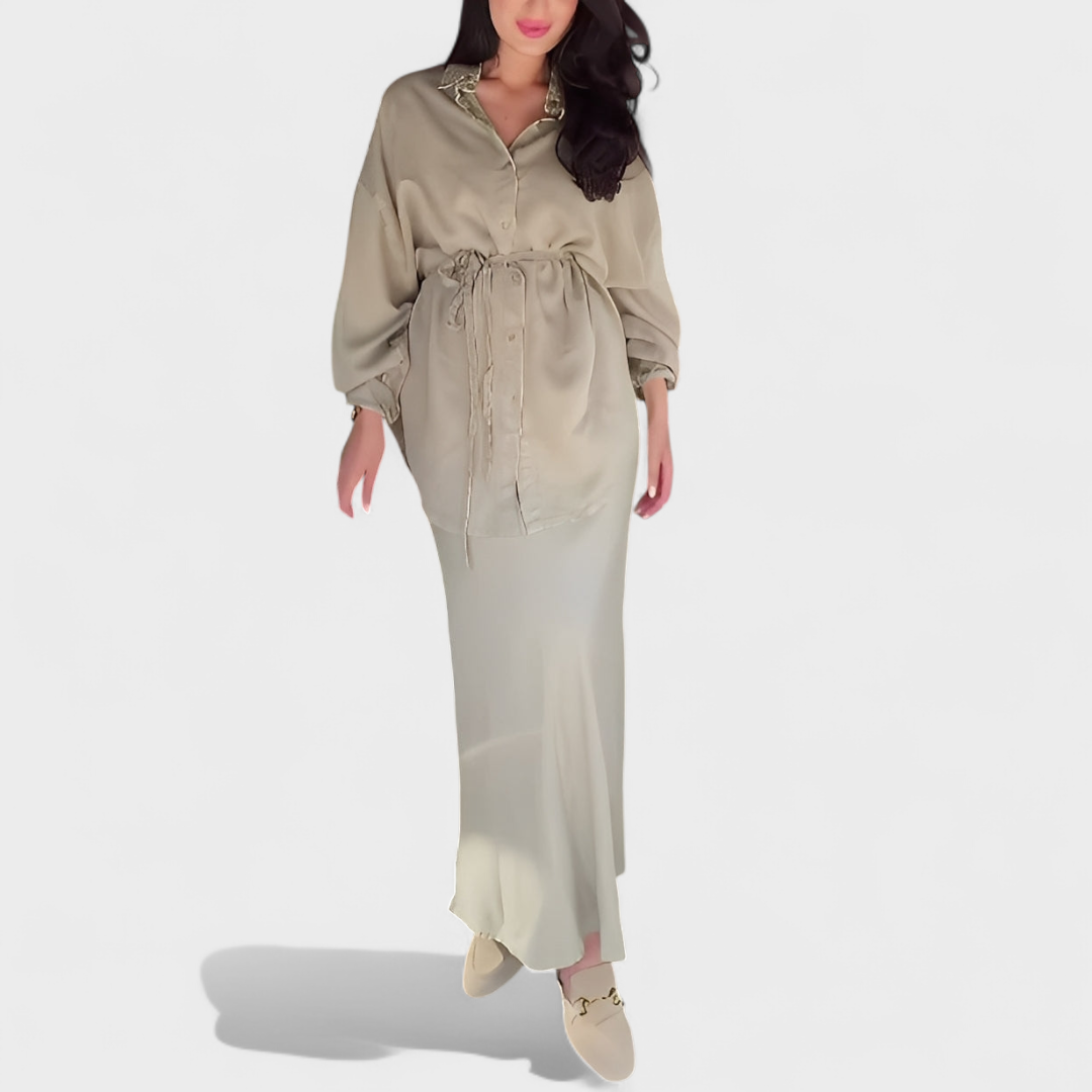 Este conjunto de saia e blusa foi criado para mulheres que valorizam a sofisticação no dia-a-dia. O design leve e fluído transmite uma sensação de naturalidade, enquanto o corte moderno acrescenta um toque de requinte.