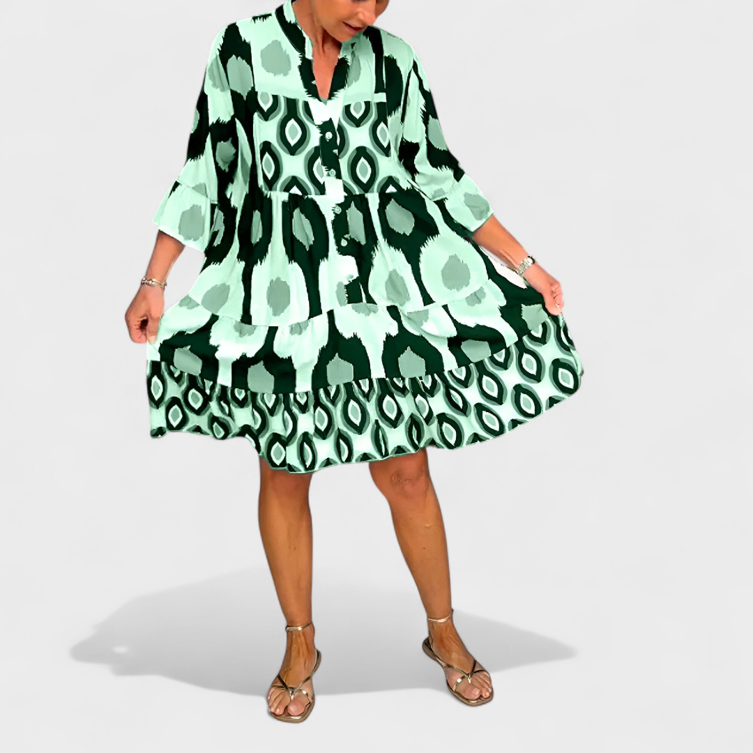Este vestido é a escolha ideal para quem procura unir conforto e estilo num só look. Com corte fluído e comprimento versátil, adapta-se facilmente a diferentes ocasiões, desde um passeio descontraído até a um encontro mais especial.