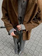 Apresentamos o nosso casaco Matilda, feito em poliéster para uma combinação perfeita de estilo e funcionalidade. Este casaco cropped de mangas longas apresenta uma gola e fecho frontal com botões, ajuste largo, ajuste nos ombros tanto na frente quanto nas costas, costuras de ombro ligeiramente baixadas, punhos com fecho de botão, bolsos aplicados na parte da frente e elástico forrado na parte inferior, tornando-o perfeito para um look casual, chique e com um toque de estilo biker. Com uma estética de outono, casual e moderna, ela complementa perfeitamente o seu visual, seja para um passeio descontraído ou para adotar uma vibe ousada e descolada. Eleve a sua coleção com esta peça essencial.