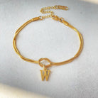 Esta pulseira nó do amor com letras A-Z é delicada e elegante, feita em aço inoxidável dourado de alta qualidade.