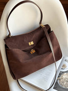 Apresentamos a nossa bolsa Ramona, confeccionada em couro vegan com efeito camurça para uma combinação perfeita de estilo e funcionalidade. Esta bolsa com alça de ombro apresenta um visual de camurça e um detalhe de fecho dourado, tornando-a ideal para jantares, passeios pela cidade ou para o uso diário. Com uma estética chic de outono/inverno, combina perfeitamente com o seu visual, seja para uma noite fora ou para as tarefas diárias. Eleve a sua coleção com esta peça essencial.