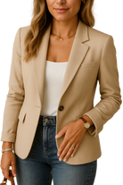 Versatilidade para camadas: Devido à sua forma esguia, é ideal para combinar com tudo, desde malhas ajustadas até blusas suaves. Seja com jeans ou calças, o blazer é fácil de colocar sobre qualquer look.