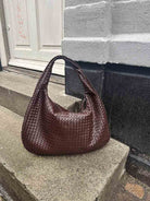 Uma silhueta elegante de pasta com detalhes em treliça trançada - esta bolsa de ombro intemporal é feita em couro vegan macio e é a escolha perfeita para o dia a dia.